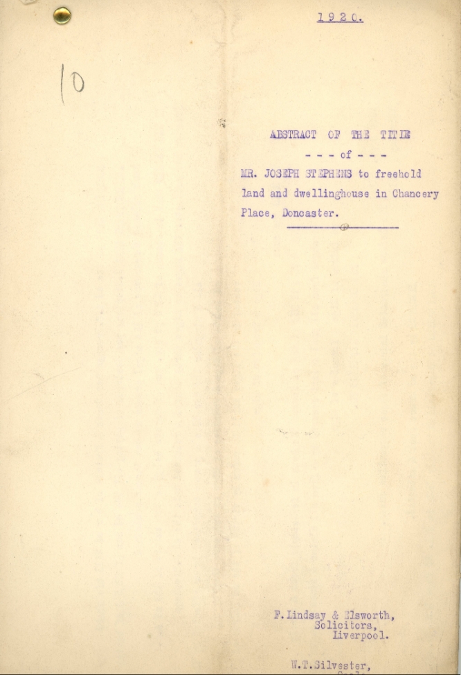 1920 Abstract of Title β Mr. Joseph Stephens β Chancery Place, Doncaster (Original Legal Manuscript)