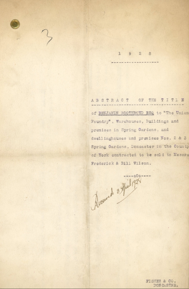 1928 Abstract of Title – Benjamin Boothroyd Esq. Union Foundry, Doncaster