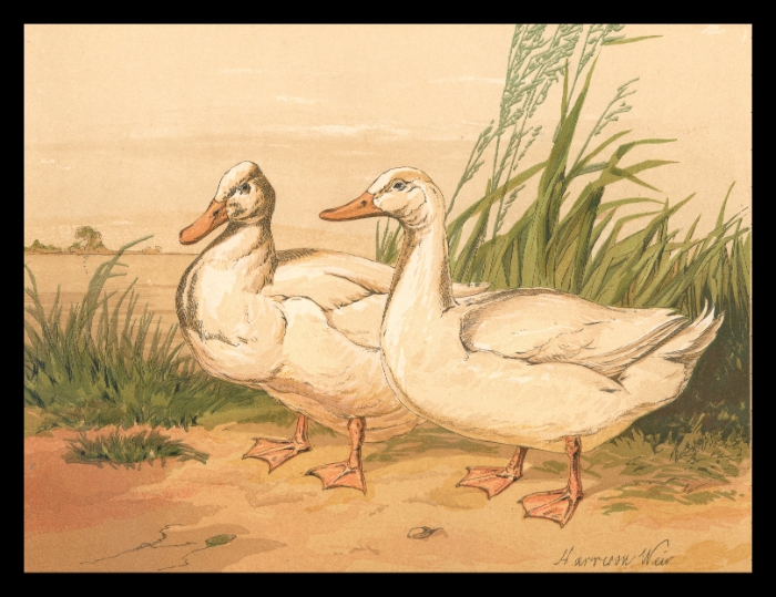 Antique White Aylesbury Ducks Print by Harrison Weir – 19th Century Poultry Illustration