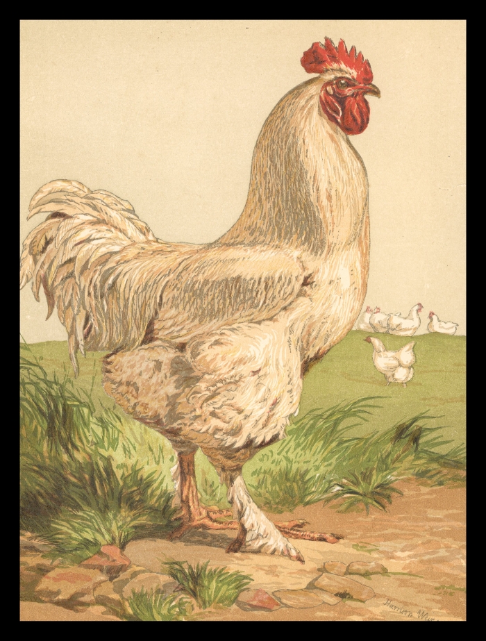 Antique White Cochin Cock Print by Harrison Weir – 19th Century Poultry Illustration
