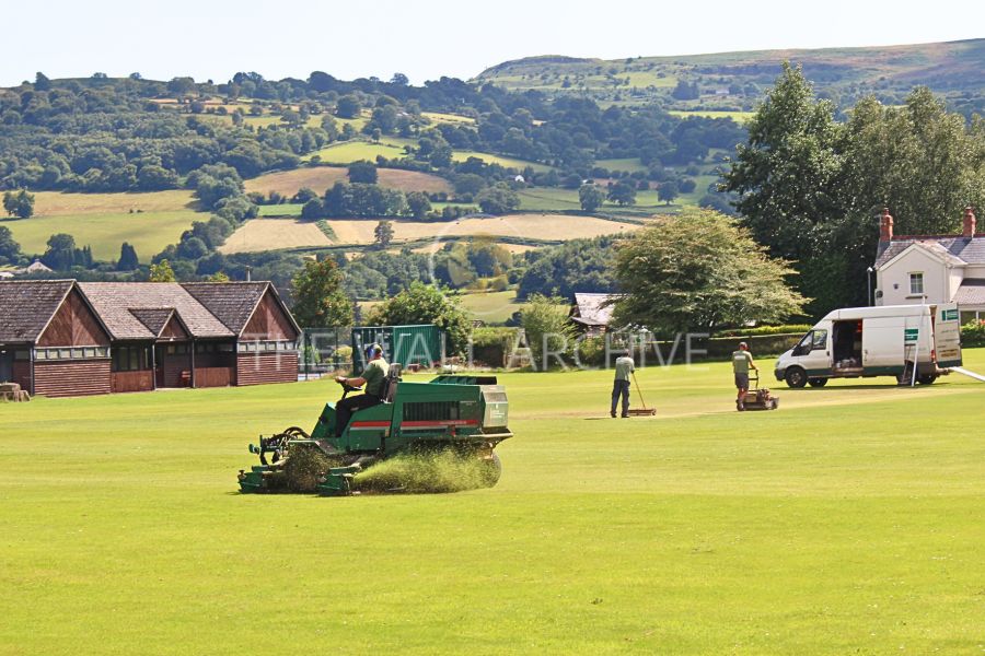 Experience the charm of Crickhowell Cricket Club as the grounds team meticulously prepares the pitch for the first game of the season. Set against the stunning backdrop of the Brecon Beacons, this photograph captures a quintessentially British sporting scene, where tradition, dedication, and scenic beauty come together.