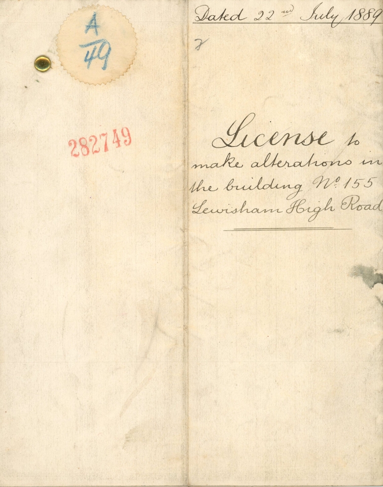Original 1889 Property Alteration Licence – Lewisham High Road, London – Building No. 155