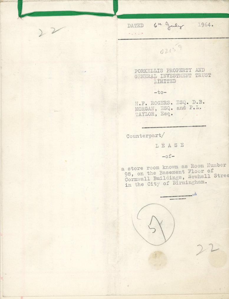 Original 1951 Lease Agreement – Cornwall Buildings, Birmingham – Thomas Harvey Elgood